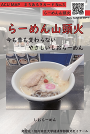 旭川市立大学 経済学部 勝又ゼミナールの学生たちが旭川市の魅力を発信するために作成したオリジナルマップと​まちあるきカードです。第1弾として平和通買物公園編(その1)を作成しました。手書き地図とそれと連携して使えるまちあるきカードを持って旭川のまちなかに出かけてみてください。